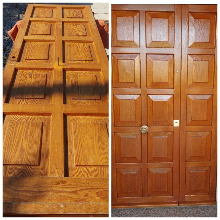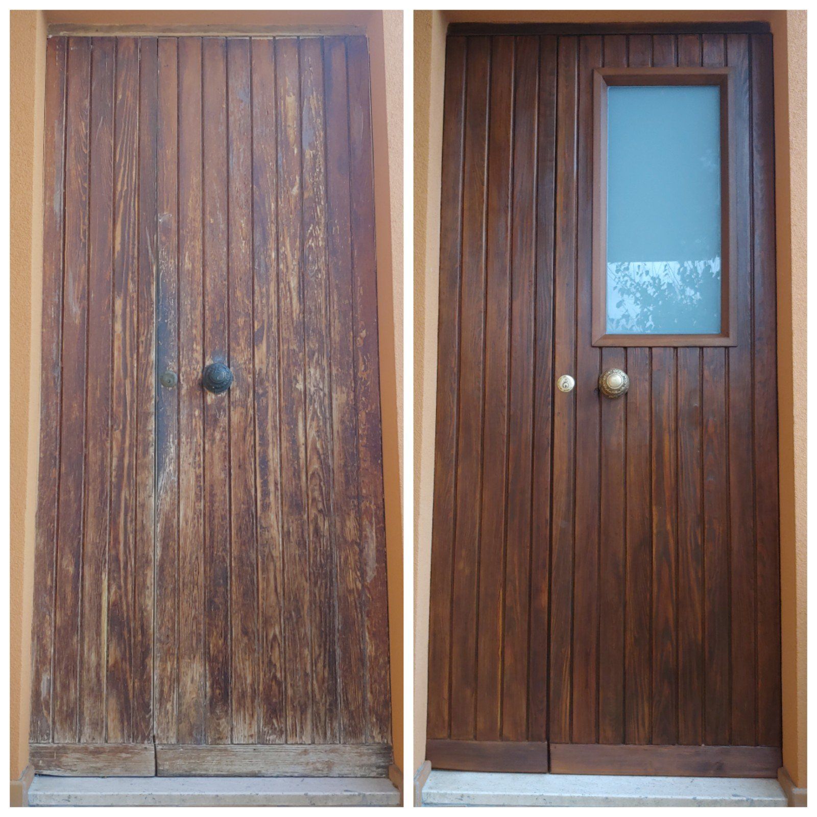 portoni in legno all'apparenza inservibili, sostituendo le parti danneggiate, aggiungendo i pezzi mancanti e rinnovandole completamente nell'aspetto anche per quanto riguarda il colore.